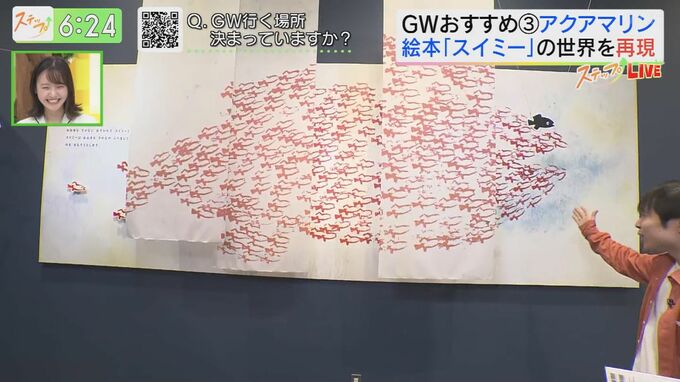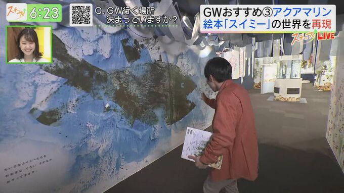 --井上アナウンサー「まさにゴールデンウィークにぴったりなイベントですよね。スイミーの中に登場するクラゲなども展示されているので、子どもから大人まで楽しめる企画展となっていますね。」