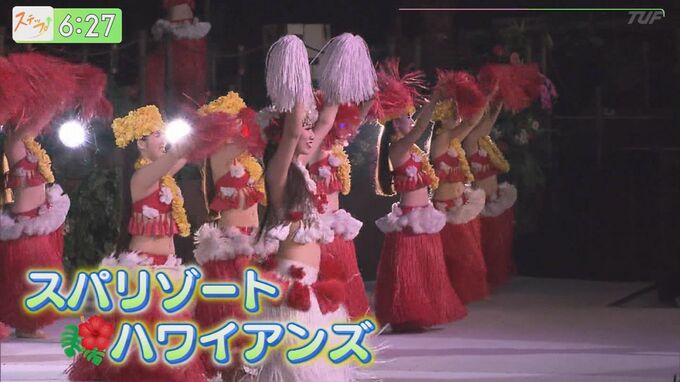 28度に保たれた館内でフラガールのショーや勇壮なファイヤーナイフダンスが一年中楽しめます。