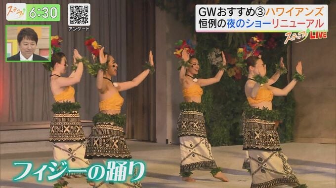 また恒例の夜のショーもリニューアルされました。『翔(かける)~To the new world~』と名付けられたショーは全19曲のうち6曲が新曲です。その他、太平洋の島国「フィジー」の踊りも楽しむことができます。