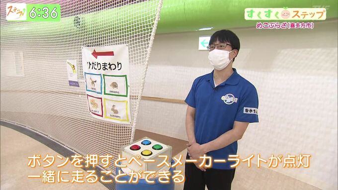 ---岡田さん「ボタンを押すと床についているペースメーカーライトが点灯して、一緒に走ることができるようになっている。」