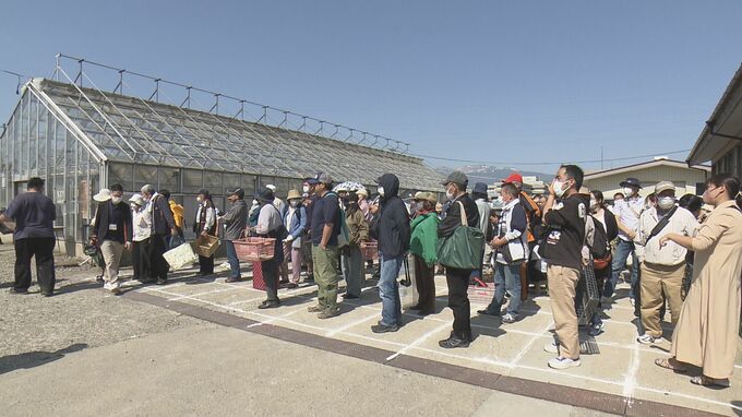 販売会には、朝から約600人が訪れ、色鮮やかに咲きそろった花の中からお気に入りのものを選んでいました。