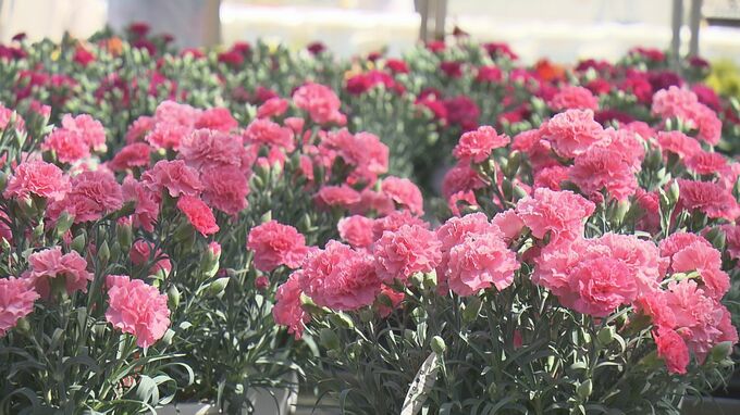 福島市の福島明成高校では、毎年、母の日に合わせて生徒が栽培したカーネーションを販売しています。4日の販売会では17品種、2000鉢が用意されました。