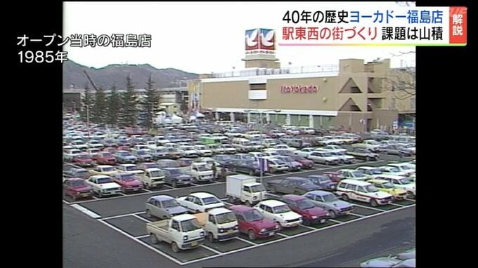 今からおよそ40年前の1985年、福島店がオープンしたときの映像を見ると、駐車場には車がびっしり。店内も、ワゴンの周りに多くの客が集まっていました。