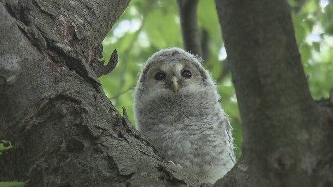 9日、福島県伊達市で撮影された、フクロウの赤ちゃん。神社にある木を住みかにしていて、幸せを招く鳥としていま、話題を集めています。