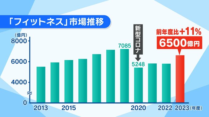 民間の調査会社帝国データバンクがまとめた昨年度のスポーツジムを含む「フィットネス市場」の売り上げを見ると、新型コロナの影響を受けた数年は大きく減りましたが、徐々に回復しています。