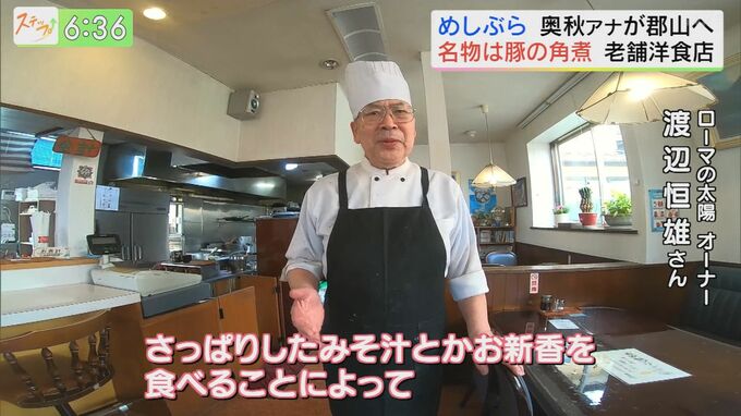 --渡辺恒雄さん(ローマの太陽 オーナー)「私は食べやすさに一番こだわっていて、洋食を食べたときにさっぱりしたみそ汁とかお新香を食べることによって、すごくバランスの良い食事になるかなと思って。」