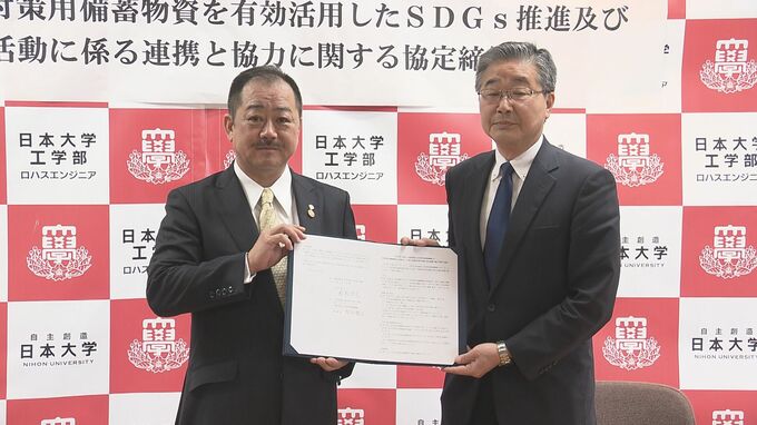 災害用に備蓄されている非常食は、期限までに食べられずに廃棄されることなどが、課題となっています。こうした中、日本大学工学部は、フードロスを削減するため、日本非常食推進機構と協定を結び、賞味期限が近づいた非常食を有効活用する取り組みを進めることとなりました。
