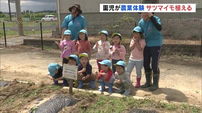 サツマイモの苗を植えたのは、福島市内の保育園児や幼稚園児、あわせて167人です。福島市では、食育の一環として農業に触れてもらおうと毎年この時期に体験をおこなっています。園児たちは説明を聞きながら、土を掘って苗を植え、感触を楽しんでいました。
