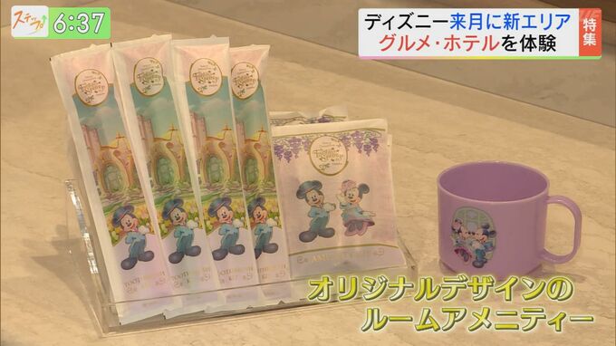 --佐々木アナ「ディズニーのホテルといえば、アメニティが気になる方もいますよね?見に行きましょう。かわいい!これは使うのがもったいない。」