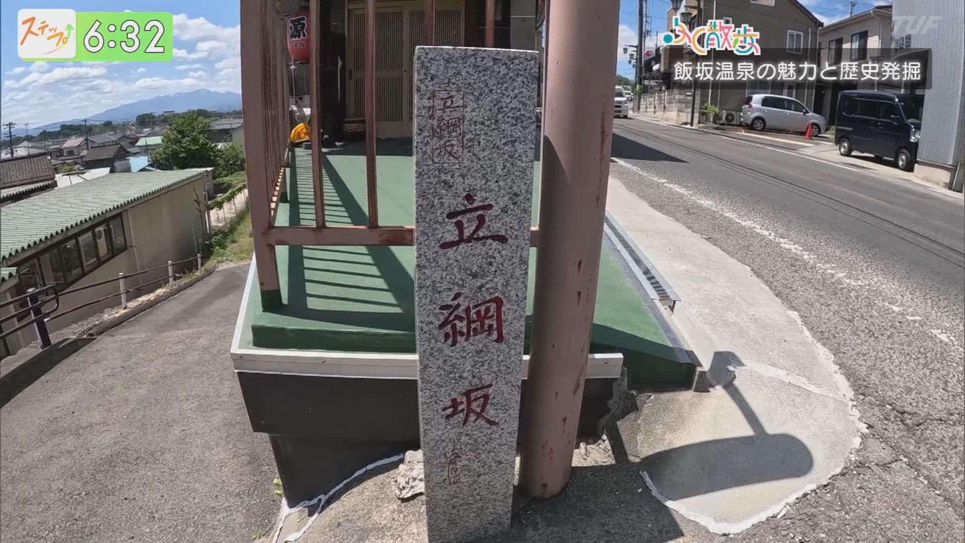 さらに、県道3号を進むとまたしても石柱を発見!『立綱坂』。こちらの文字はなんと、飯坂町出身で俳優の佐藤B作さんが描いた文字なんです。こんな発見があるなんて楽しくなってきちゃった!さらに進んでいきましょう。どこか懐かしい町並みが見えてきました。