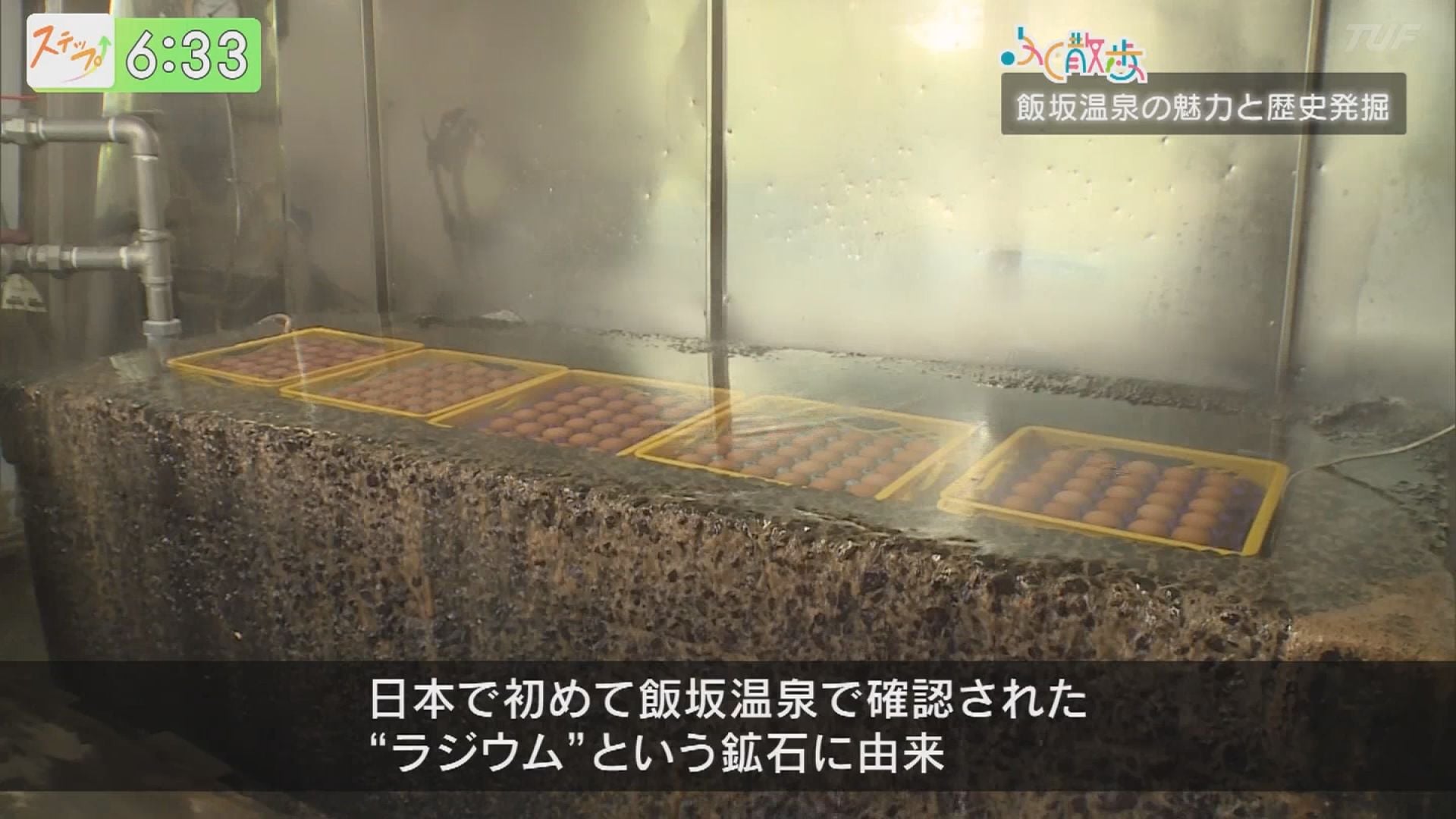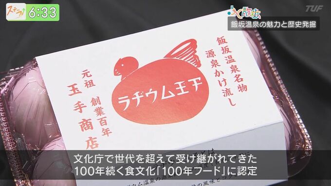 そう、こちらは『ラジウム玉子』。飯坂温泉では、日本で初めて確認された〝ラジウム″鉱石に由来して、温泉卵を〝ラジウム玉子″と呼ぶんです。文化継承のため、世代を超えて受け継がれてきた食文化「100年フード」にも認定。歴史を感じますね。