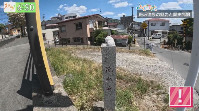 かつて、飯坂の表玄関であった花水坂。早速石柱を発見!駅名と同じく〝花水坂“ですね。この文字、実は日本が誇るホームラン王『王貞治さん』の直筆なんです。何気ない出会いがあるなんてワクワクするな~。