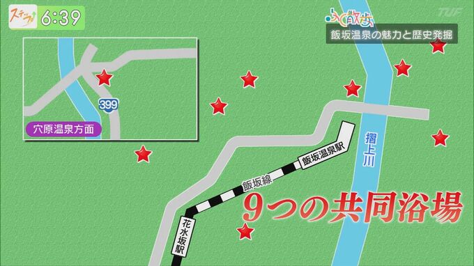 飯坂温泉の特徴である熱めの温度で、これからの暑い季節は汗をかいてスッキリできますよ。実は飯坂温泉全ての共同浴場は『分湯槽(ぶんとうそう)』というものが使われています。分湯槽とは、温泉を溜める大きなタンクの事。ここで複数の源泉を混ぜ、そのお湯を各浴場へ分配するんだって。ということは、共同浴場の泉質はほとんど同じ。新たな発見ですね。
