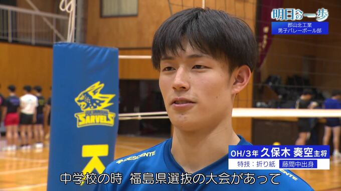 チームの主将、久保木 奏空(くぼき そら)選手は、北工でバレーがしたくて、いわき市の親元を離れ入部しました。