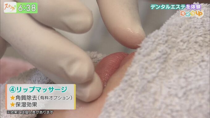 ジェルを使いながら、やさしくマッサージ。なっぺさんも、すっかりデンタルエステを堪能。