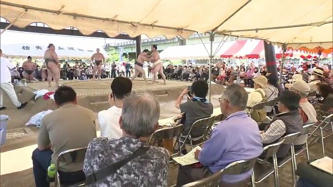 荒汐部屋が福島市で合宿を行うのは2年連続で、今年は暑さや夏巡業の時期を踏まえ、去年より2か月早く行われています。気迫あふれる取り組みに、訪れた400人を超えるファンが熱い視線を送っていました。