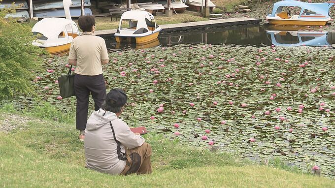 福島県本宮市にある「花と歴史の郷蛇の鼻」では、約1万輪のスイレンがいま、見頃を迎えています。今年は、5月に暑い日が続いたため、例年よりおよそ2週間ほど早い開花となりました。