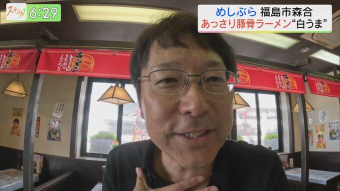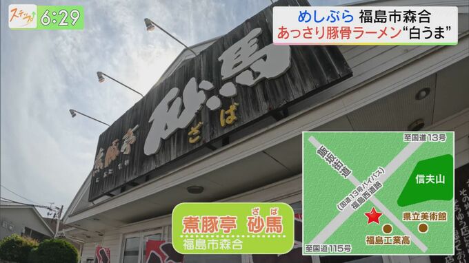 --奥秋直人(TUFアナウンサー)「私が今歩いているのは、福島市森合です。実は私が30代の頃、このあたりに住んでいたんですね。その時に見つけたお店、ラーメン屋さん。今でも足しげく通っています。それがこちらの『煮豚亭 砂馬』です。」