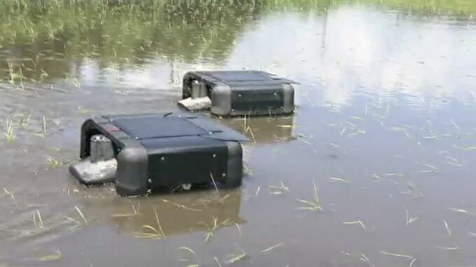 アイガモが水田の雑草を食べるアイガモ農法をヒントに開発されたコメ作りを手助けするロボットがあり、その最新型が福島県浪江町で披露されました。気になるその性能は?