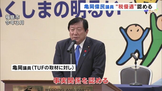 自民党の福島県連会長を務める亀岡偉民衆院議員が、自らが代表を務める政党支部に寄付し、所得税の一部の控除を受ける税の優遇を受けていたことがわかりました。