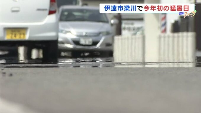 全国で最も暑くなった伊達市梁川。最高気温は35.2℃を観測、全国で今年初めての猛暑日となり、汗をぬぐう人や日傘をさしている人が多く見られました。