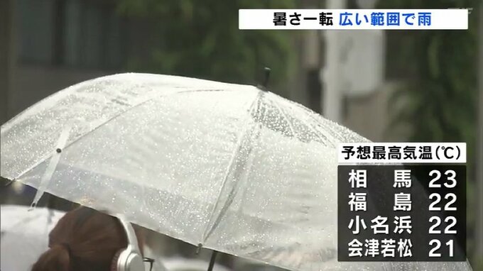 日中の最高気温は、相馬で23℃、福島で22℃で、福島はきのう(17日)と比べて9℃ほど低くなる予想です。気象台では、土砂災害や低い土地の浸水、河川の増水に注意するよう呼びかけています。