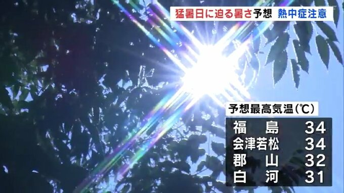 予想最高気温は福島と会津若松で34℃など、猛暑日に迫るところもある見込みで、気象台は、熱中症に注意するよう呼びかけています。