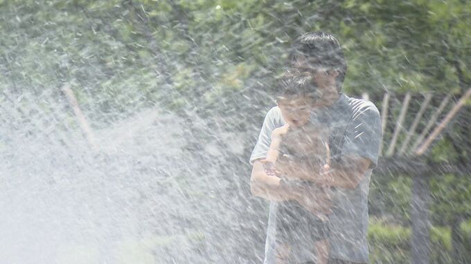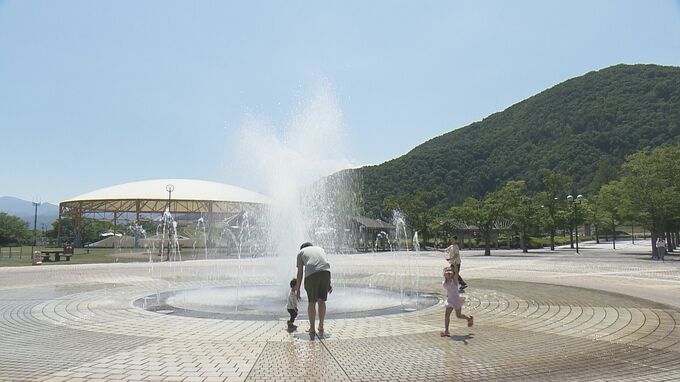 高気圧に覆われた県内は午前中から気温が上がり、最高気温は喜多方で33.9℃、伊達市梁川で33.8℃など、県内30地点のうち7つの地点で今年最も暑くなりました。33.6℃となった福島市では、子どもたちが噴水で水遊びをしながら涼んでいました。