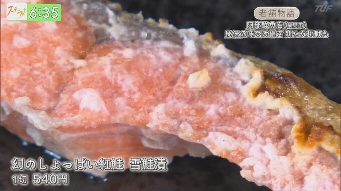 --阿部壽明さん(阿部鮮魚店 2代目)「しょっぱい塩鮭、『雪鮭漬』っていうんですけどね。1回にひと切れ食べられないね、しょっぱくて。」
