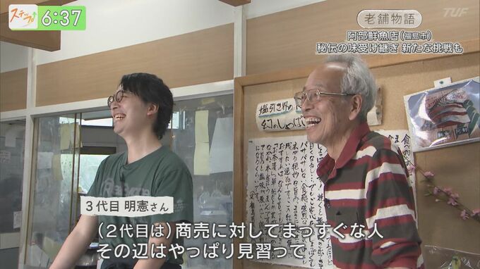 --明憲さん(阿部鮮魚店 3代目)「商売に対してまっすぐな人なんで、その辺は見習って、一つ筋を通して商売できるように私もなれればいいかなと思ってます。〝現状維持は退化″と常に思ってるので、そのニーズに合わせられるように、新しいことをできるような発想を持ってやっていきたいなと思ってます。」