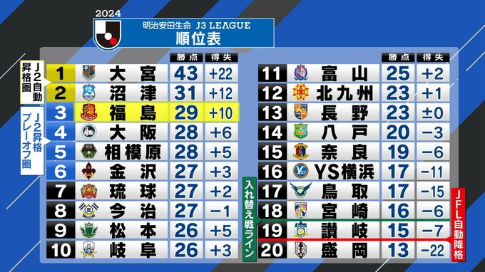 サッカー明治安田J3リーグ、福島ユナイテッドFCの快進撃が止まりません。23日、ホームで、上位の大阪を破り3位に浮上。J2自動昇格も視野に入ってきました。