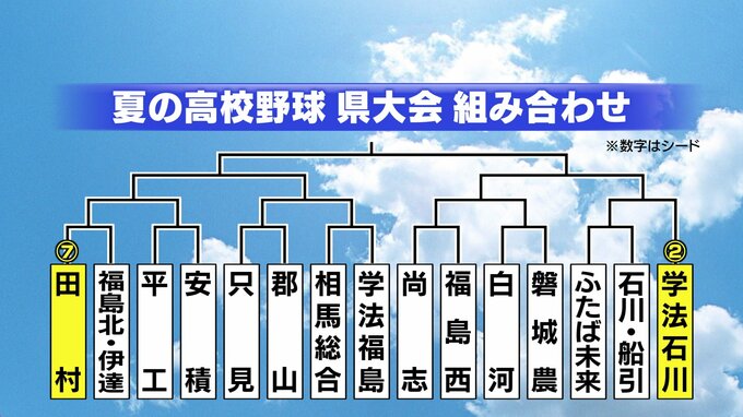 第2シードは春夏連続の甲子園出場を狙う学法石川。去年夏、あと一歩で優勝を逃した決勝、25年ぶりの夏の県大会優勝を目指します。初戦は石川・船引合同チームとふたば未来の勝者と対戦します。