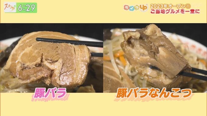そしてもうひとつの人気商品は福島県・ガッツリラーメンいち豚の『ガッツリ豚ラーメン(焼豚2枚付 1000円 )』。麺やスープの他に、2種類のチャーシューがついた食べごたえのあるセットになっています。肉厚でありながらも柔らかく、豚肉のうまみを感じられるこだわりのチャーシュー。
