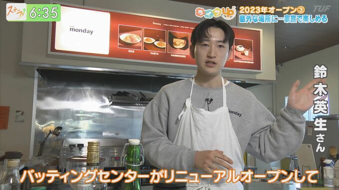 --鈴木英生さん(CAFE monday)「バッティングセンターがリニューアルオープンして、それに合わせて新しい形で子どもから大人まで楽しんでいただけるようなファミリーレストランを意識したお店になっています。」