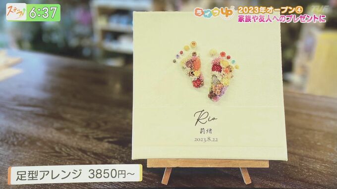 さらに『足型アレンジ(3850円~)』といって、赤ちゃんが生まれたときに病院などで取る足形を使って、実寸大で作るフラワーアレンジです。一生の思い出になりますね。