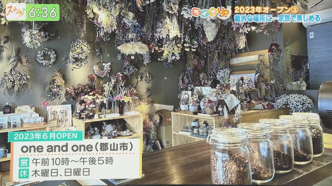 去年6月に郡山市にオープンしたドライフラワーとコーヒーの専門店『one and one』。ドライフラワーとコーヒーでお客さんを癒したいということでオープンしたお店なんです。店内のドライフラワーは1本から購入が可能で、リースなどのアレンジをオーダーすることもできます。