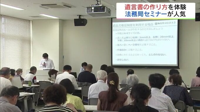 このセミナーは、自分が亡くなったあとの「相続」を円滑にするため、問い合わせが増えているという遺言書の作り方を学んでもらおうと、福島地方法務局が開きました。