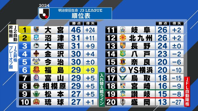 これでJ3は前半戦が終了。ユナイテッドは敗れて順位を6位に落としましたが、J2昇格プレーオフ圏内は維持した形で後半戦に向かいます。