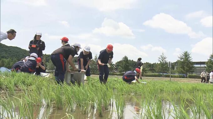 「田んぼの学校」と呼ばれるこの取り組みは、田んぼを使って、子どもたちに農業や自然環境への理解を深めてもらおうと県が行っています。2日は、郡山市の高倉小学校の児童15人が参加しました。