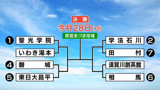 これでベスト8が出そろいました。準々決勝で、第1シードの聖光学院は、いわき湯本と対戦。そして第2シードの学法石川は田村と。磐城対東日本国際大昌平のいわき対決、須賀川創英館対相馬の組み合わせとなっています。