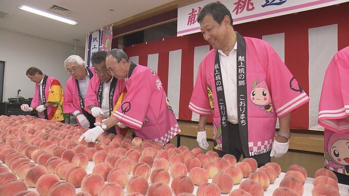福島県桑折町のモモ「あかつき」が31年連続で献上桃に選ばれ、22日、箱詰め作業が行われました。