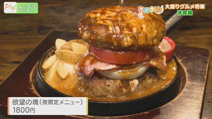 さらに、もう一つの『欲望の塊(夜限定メニュー/1800円)』がこちら!コンセプトは『ハンバーグでハンバーガー』。やわらかくふっくらと焼いたハンバーグにチーズソースとデミグラスソースという欲望がたっぷり!欲望の塊を思いのまま堪能してみては?