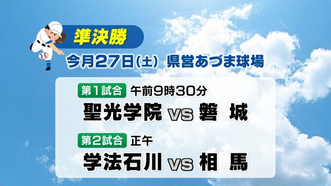 準決勝は、第1シードの聖光学院対磐城、そして第2シードの学法石川対相馬という組み合わせになりました。準決勝は27日(土)に行われる予定です。