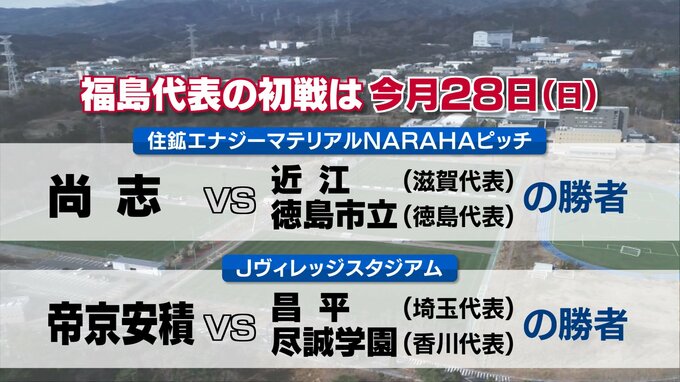 福島県内からは、尚志と帝京安積の2校が代表として出場します。共に初戦は7月28日(日)で、尚志は滋賀代表の近江と徳島代表の徳島市立の勝者と対戦。帝京安積は、埼玉代表の昌平と香川代表の尽誠学園の勝者と対戦します。
