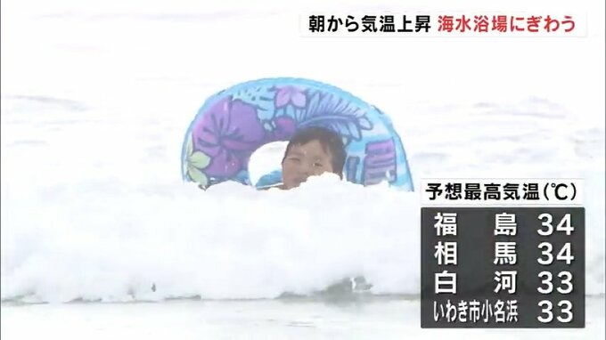 26日の福島県内は朝から気温が上がり、いわき市の海水浴場では、午前中から多くの人が訪れて海水浴を楽しんでいます。