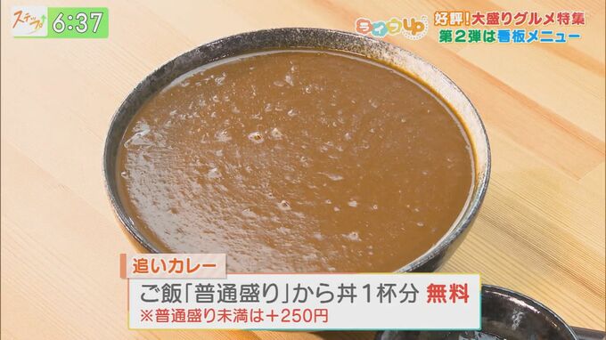 なんとご飯が多い普通盛りには、無料のおかわりカレーがついてくるんです。お腹いっぱい食べてもらいたいという店主の気持ちが伝わってきます。