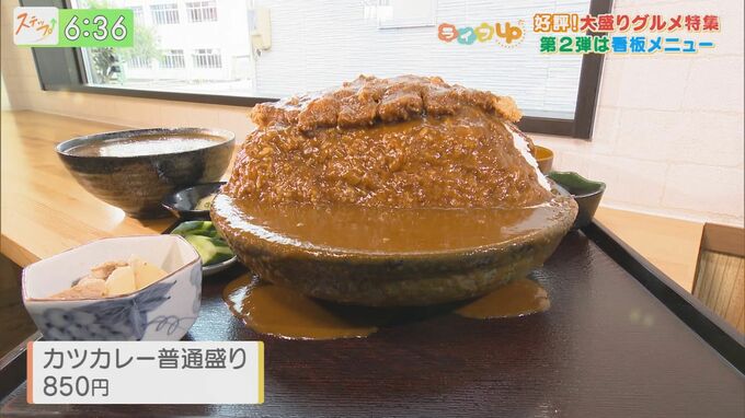 そう、このお店の名物『カツカレー(850円/普通盛り)』がすごいんです。お皿にご飯を盛り、盛り・・・盛りーーーーー!?ご飯の山が出来てる!