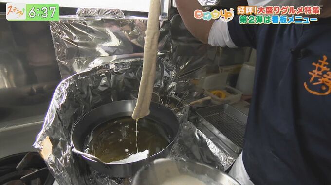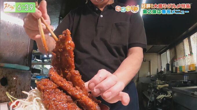 大きめにカットした鶏肉を豪快に揚げていきます。外はサクサク、中はジューシーなビッグからあげの完成!ニンニクを効かせた味付けがご飯によく合います。しかし、このお店のサービス精神はこれで終わりません。