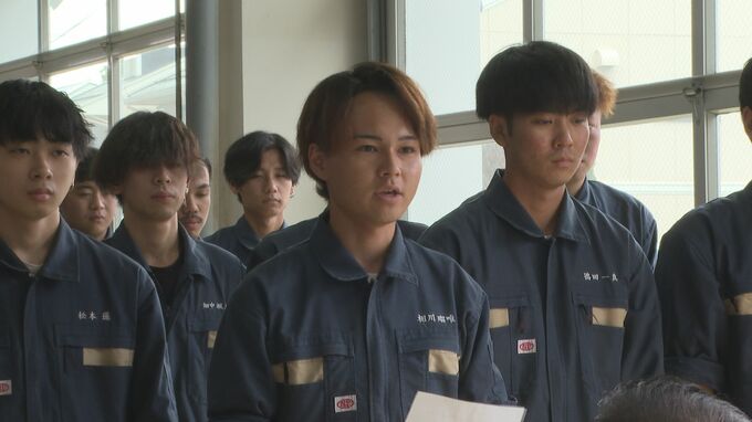調印式の後、学生を代表して、相川瑠唯さん(1級自動車工学科3年)が、高場社長らに謝辞を述べました。提供された車は、EVの構造に関する授業などで使用されるということです。