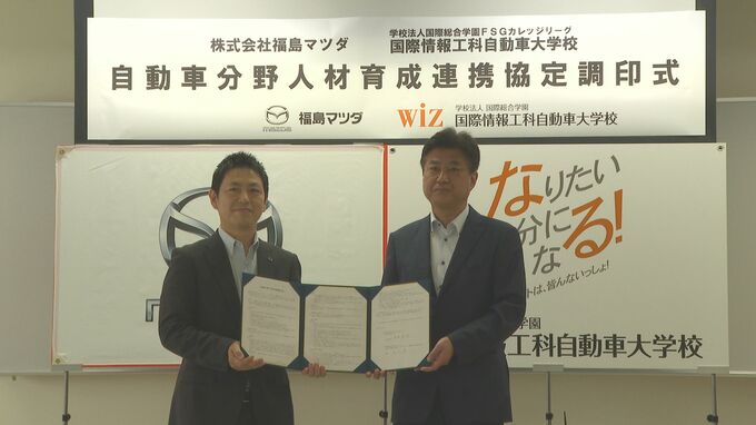 自動車分野の人材育成を目指して、福島県郡山市の福島マツダと、国際情報工科自動車大学校が連携協定を結びました。